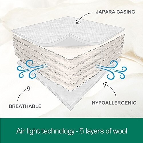 • Pure Australian wool filling and a soft 100% cotton Japara casing provide lasting comfort and durability.