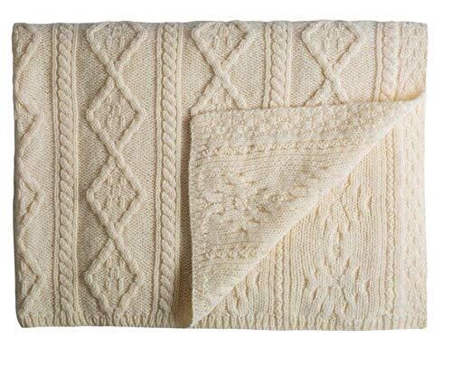 • traditional Aran stitches featuring Irish cable and diamond motifs
