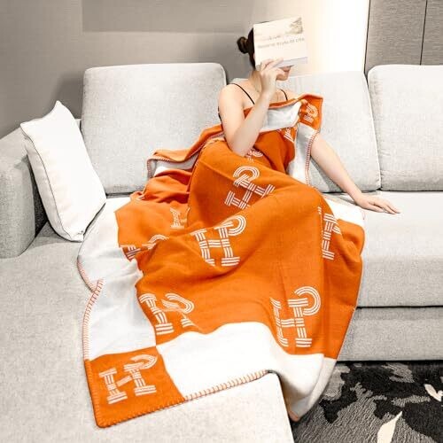 Experience luxurious warmth with the GHUQ Orange Throw Blanket. This soft wool knit adds a stylish plaid touch to sofas and beds, great for all-season lounging, travel, and cozy moments at home or on the go.