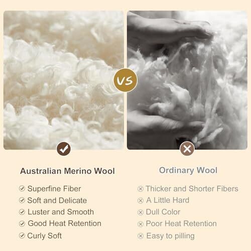 • Premium wool quality with excellent loft, temperature regulation, and breathable warmth for year-round comfort.