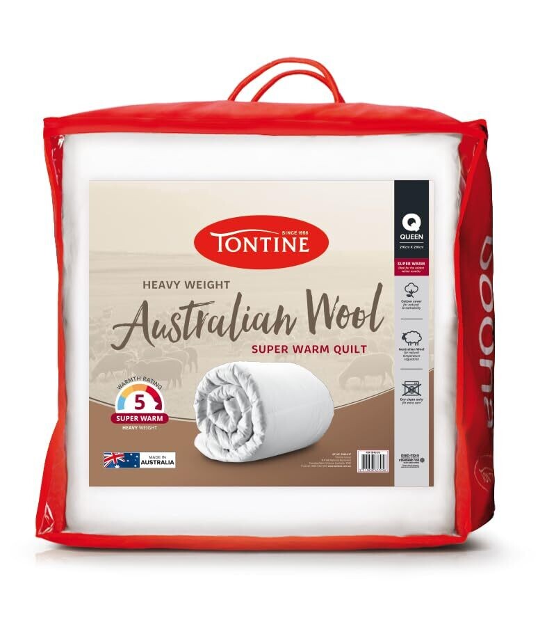 • Tontine Australian Wool Quilt Doona Single – Super Warm, Heavyweight Comfort