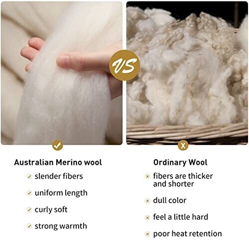- Premium, durable construction with thick, soft merino wool blend fibers designed for long-lasting use and a plush hand feel.