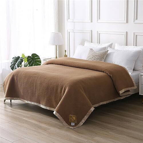 Kobelar Thick Warm Wool Blanket delivers all-season comfort with 100% Pure New Zealand wool. Its soft, plush texture suits beds and camping, while a generous 205x235 cm size provides cozy warmth without bulk and a timeless dark camel look.