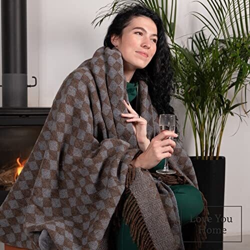 Experience luxury with LYHome’s 100% wool blanket, crafted from natural New Zealand wool for warmth, breathability, and soft comfort. Generous 55x79 inch size with fringed edges and a Scandinavian rhombus pattern, suitable for sofa, bed, travel, or outdoor use.