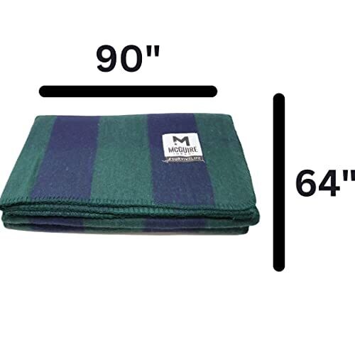 Warm bunkhouse-style blanket in Green/Navy designed for camping, home use, survival, or first aid. Wool blend provides natural insulation and moisture wicking, with durability and a flame-retardant touch for cozy warmth in any setting. 64