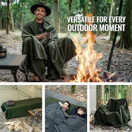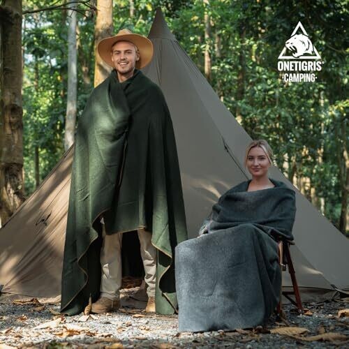 • Large and cozy wool blanket designed for camping and outdoor use, offering warmth and comfort in outdoor settings.
