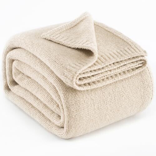 Brandco Chunky Knit Merino Wool Blend Blanket Throw – Beige 50X60In
