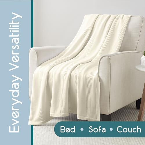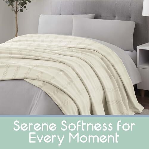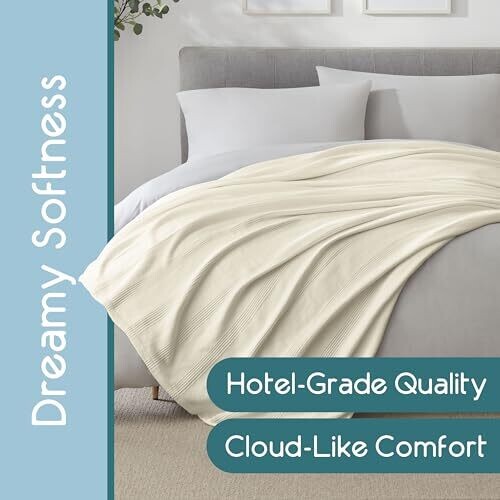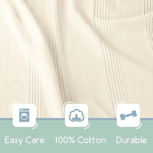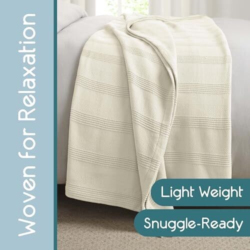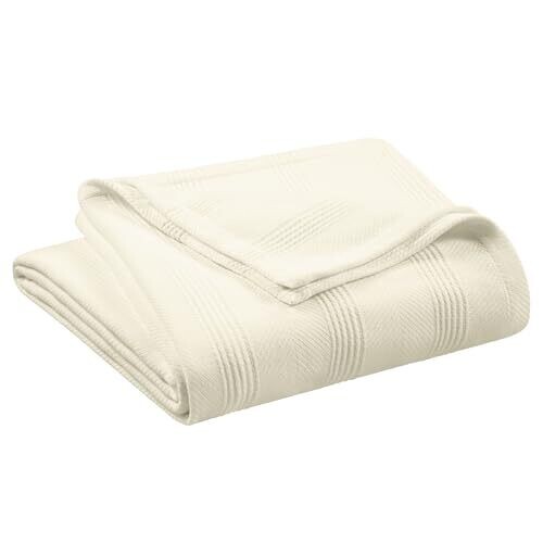 Experience ultra-soft, breathable 100% cotton with this king-size blanket. Lightweight yet warm for all seasons, its herringbone weave adds timeless style. Ivory tone complements any decor, easy-care and OEKO-TEX certified for hotel-luxury, everyday use.