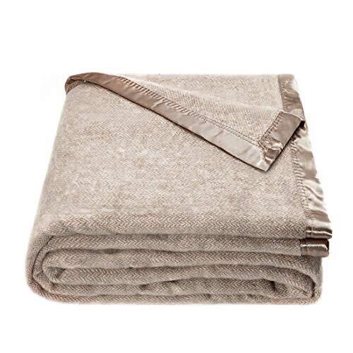 Spencer & Whitney Herringbone Wool Throw Blanket Beige – Large Queen Size
