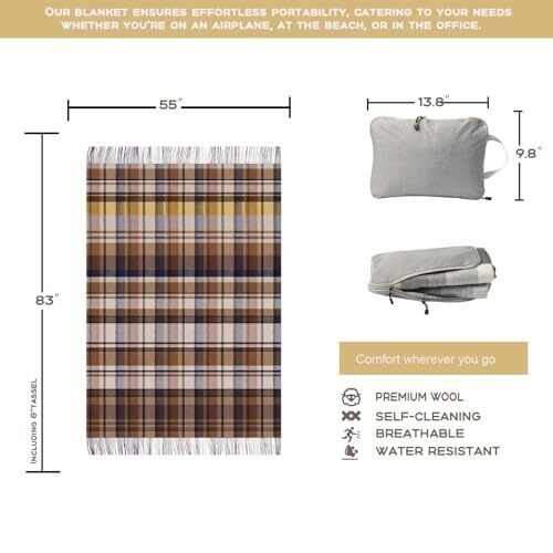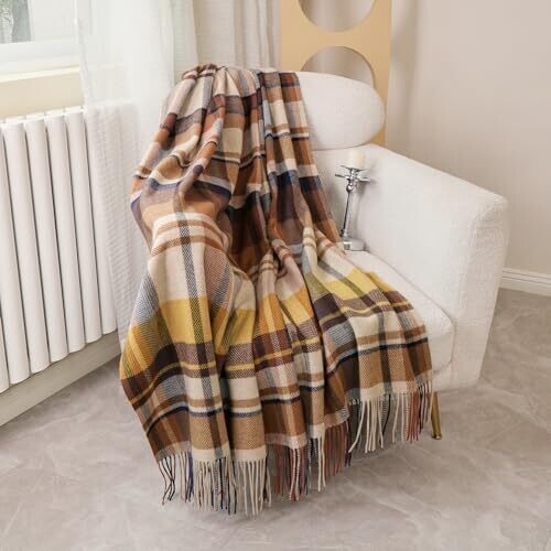 • Temminc Pure Wool Plaid Throw Blanket delivers luxurious warmth with a soft, cozy feel that elevates any living space.