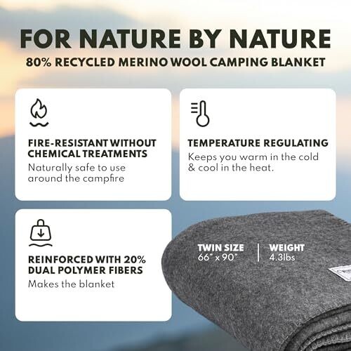 Woolly Mammoth Merino Wool Blanket - Large 66X90, 4 Lbs, Outdoors