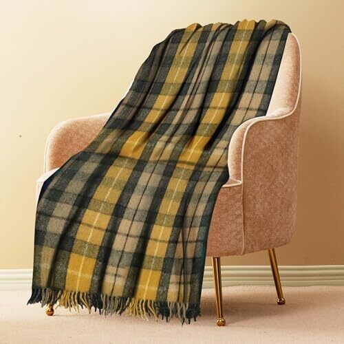This Buchanan Natural Tartan pure wool blanket delivers timeless warmth and softness for beds or sofas. Generous 74x62 inch size, with fringed edges, brings cozy style to any room while offering durable, easy-care wool warmth for cold seasons.