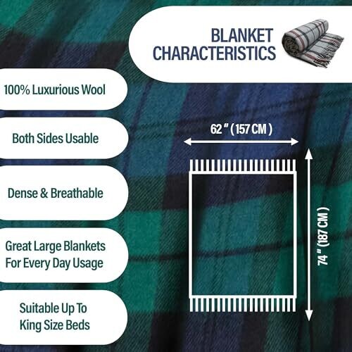 Luxwool Soft Wool Blanket – 70X60 Inches, Black Watch Tartan, Lightweight