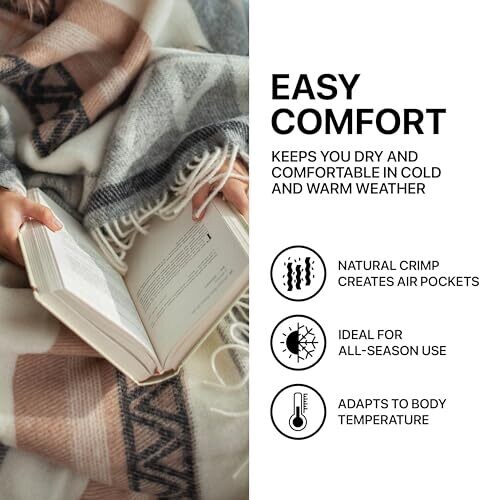Cozy up with the Cozy Blankets Wool Blanket, a luxurious throw crafted from 100% New Zealand virgin wool for natural softness and year-round warmth. Stripes with fringes add timeless style for sofas, beds, or travel.