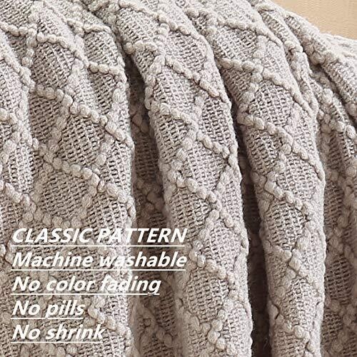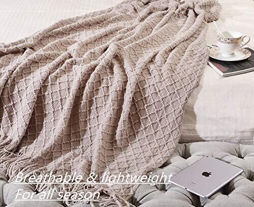 • Generous size (127x152 cm) offers versatile coverage for sofas, beds, or blankets for two, in a sophisticated light grey/khaki color palette.