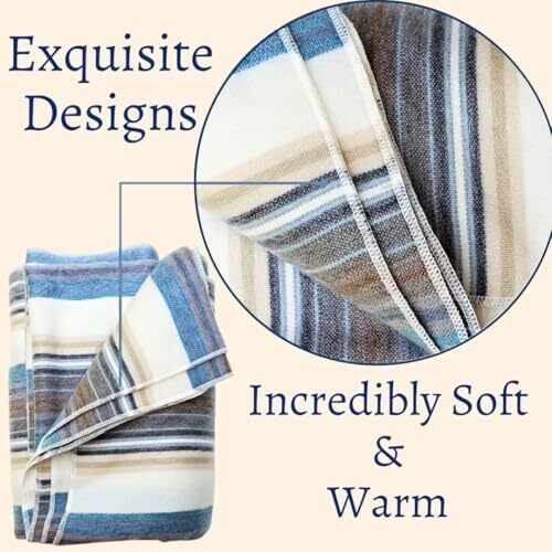 Davlina's Alpaca Wool Throw Blanket delivers exceptional softness without bulk. Lightweight, breathable, and hypoallergenic, it stays warm without itchiness. This blue-white varicolored queen-size throw is perfect for cozying up couches or beds, adding luxury without scratching skin.