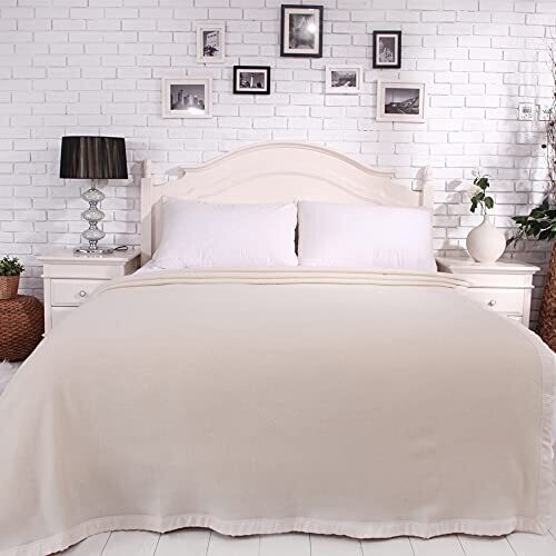 • Everwool 100% Pure Wool Blanket – Heavyweight 500Gsm, Ivory Twin 170X230cm