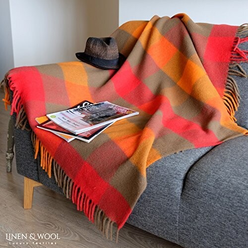 • Linen & Cotton Bolivia Cozy Checkered Blanket – Soft Wool Throw 130X170 cm