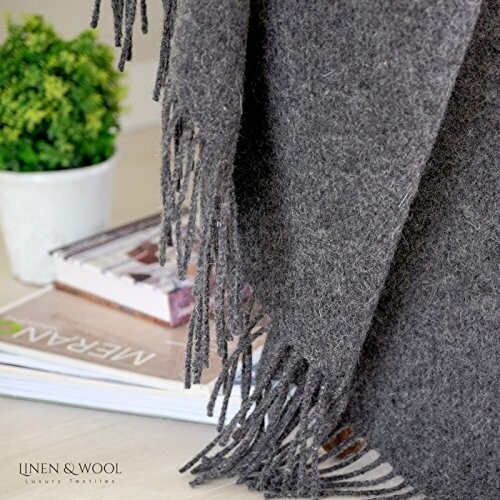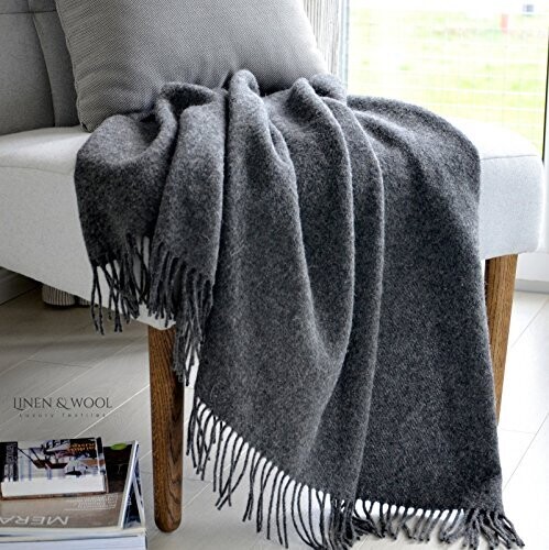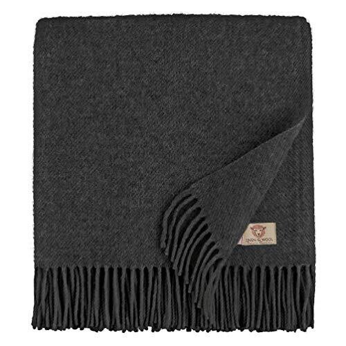 Linen & Cotton Columbus Soft Warm Blanket – 100% NZ Wool, Anthracite 140X200
