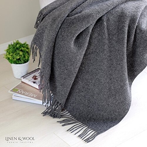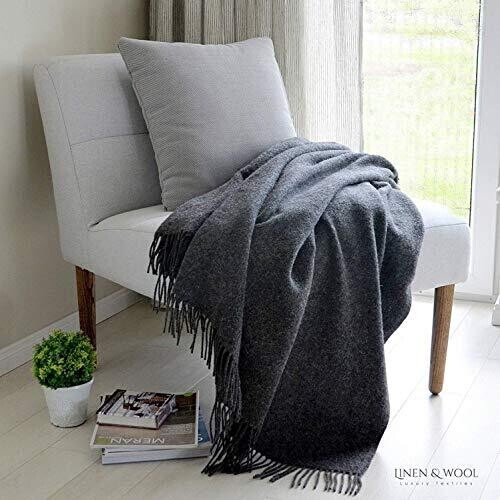 • Linen & Cotton Columbus Soft Warm Blanket – 100% NZ Wool, Anthracite 140X200
