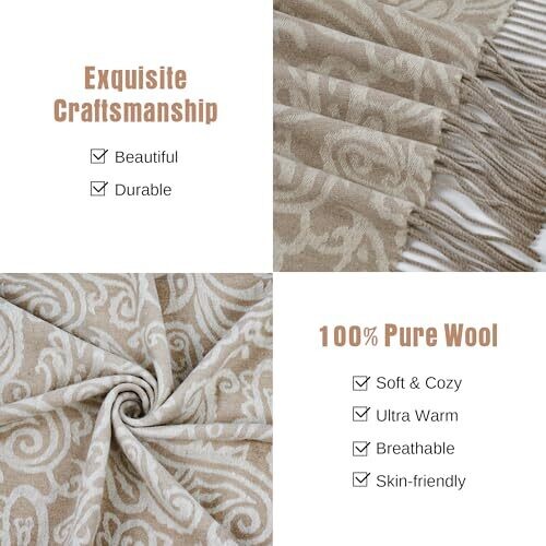 • Luxwool 100% Pure Wool Blanket Paisley 50X88 Camel Throw | Premium Home Decor