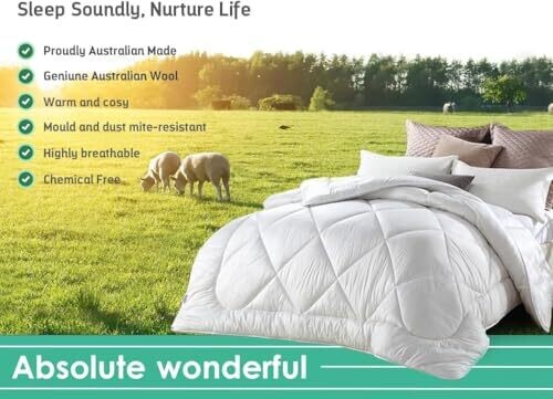 Premium Australian Merino wool fills this light summer quilt, offering natural insulation and softness. Breathable, 200GSM weight is ideal for singles. Features durable piping, Woolmark-certified draw, and hypoallergenic properties for a comfortable, safe night's sleep.