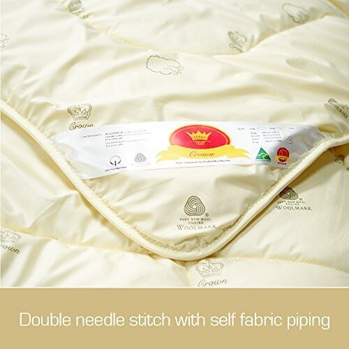 Australian-made Woolcomfort Crown 500GSM wool quilt, Queen size, delivers natural warmth and breathability. Made from 100% pure Australian wool, it adapts to seasons, with durable double-needle stitching and allergy-friendly materials for a healthier, comfortable night's sleep.
