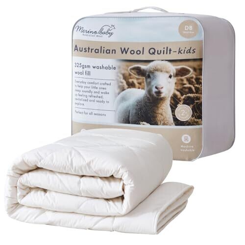 - Introducing Merino Baby Australian Wool Quilt-Double: a premium, responsibly sourced quilt designed for children to sleep comfortably year-round.