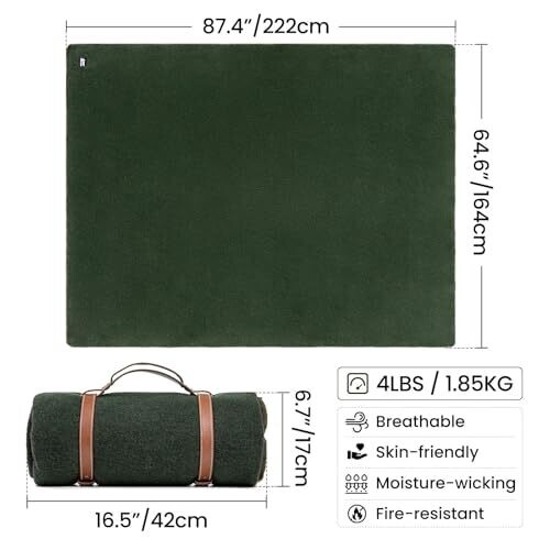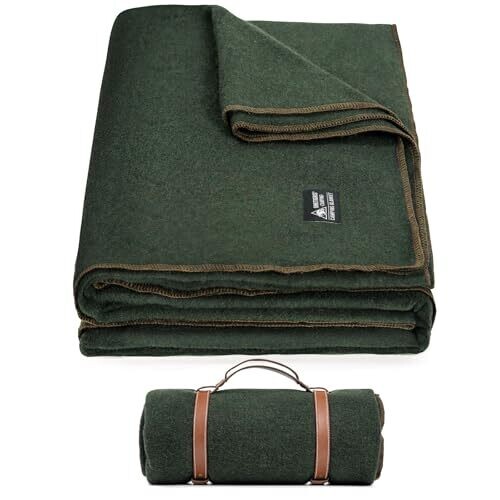 • Large and cozy wool blanket designed for camping and outdoor use, offering warmth and comfort in outdoor settings.