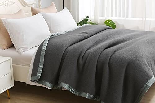 PureWool 100% wool blanket offers all-season warmth with a heavyweight 500GSM. Twin/long size suitable for beds and camping, natural insulation and moisture-wicking, soft single-layer weave, dark grey design, easy care with professional cleaning guidance.