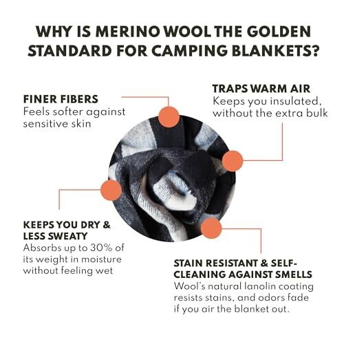 Woolly Mammoth Woolen Company Camping Blankets provide premium warmth with 80% Merino wool, breathable insulation, and a generous 66 x 90 size. Black and cream plaid styles suit any campsite or travel setup while remaining lightweight and durable.