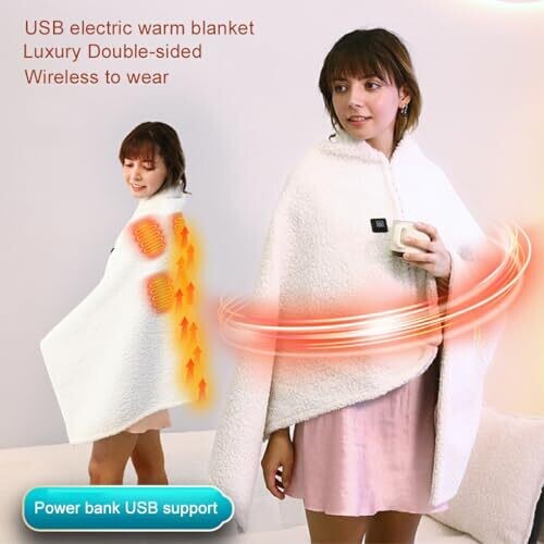 • SUIOPPYUW Electric Heated Blanket with Lamb Wool for Cozy Nights - Portable