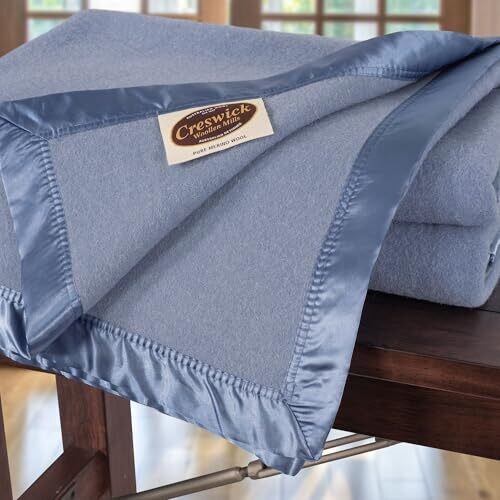 • Creswick Woollen Mills 100% Australian Merino Wool Blanket – Soft & Natural (French Blue)