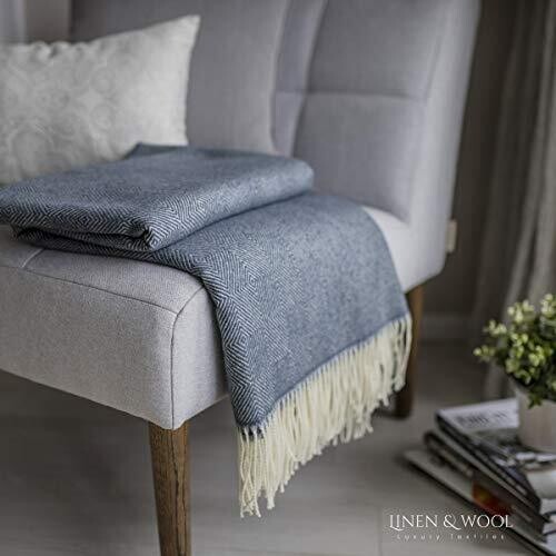 • Elevate your lounge with the Linen & Cotton Classic Soft Wool Blanket, a luxurious merino wool throw featuring a refined diamond pattern.