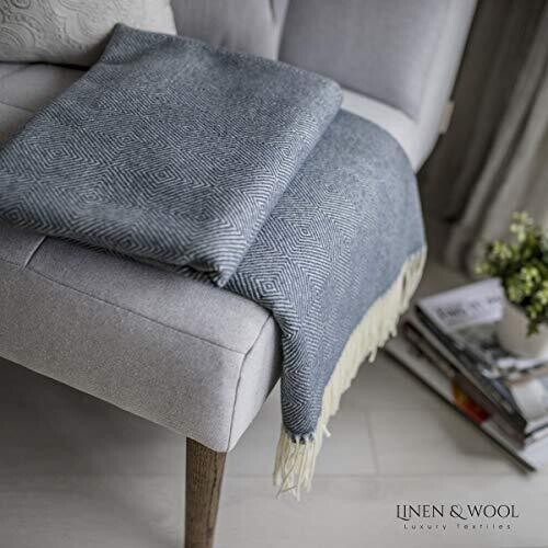 • Linen & Cotton Classic Soft Wool Blanket Merino Wool Throw – Diamond Pattern