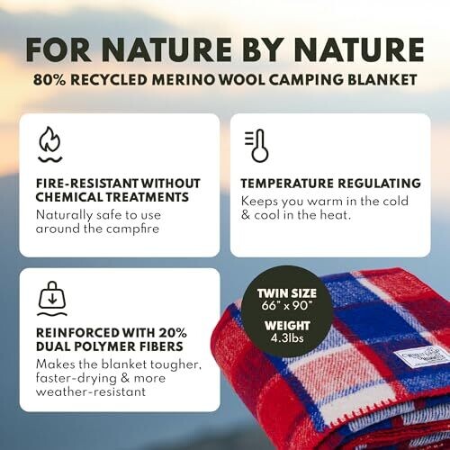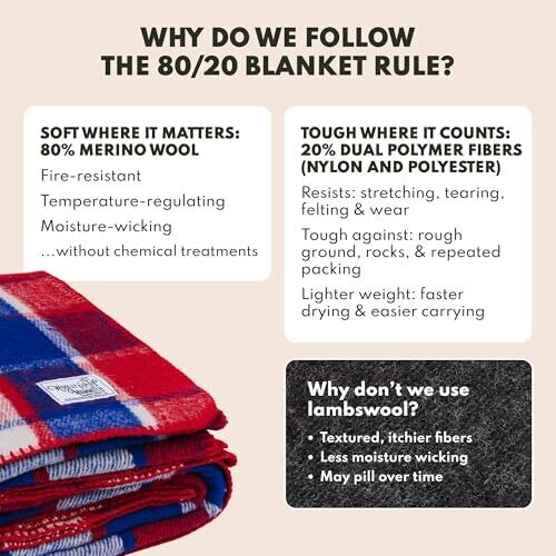 Stay warm with this heavyweight Merino wool camping blanket from Woolly Mammoth Woolen Company. 80% Merino wool blended with synthetic fibers, 66