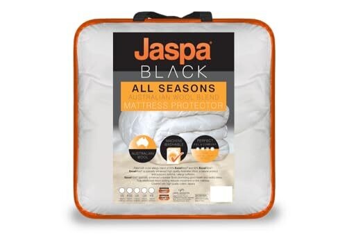 Experience luxurious comfort with the Jaspa Black JBMPASQ All Seasons Wool Blend Mattress Protector for Queen beds. A premium, machine-washable shield blending natural wool with durable polyester for year-round warmth, breathability, and secure wrinkle-free coverage.