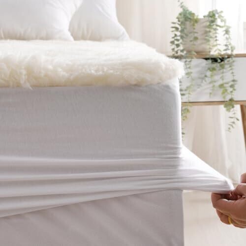 A year‑round, luxurious underlay topper with double‑sided wool: 350gsm for warmth and 200gsm with a natural cotton cover for cooler nights. Draws moisture away for restful sleep; machine washable; deep skirt fits most mattresses and hides under sheets.