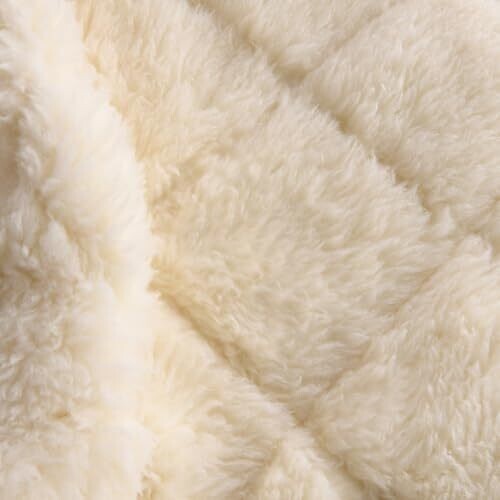 • Double‑sided comfort: a plush 350gsm wool pile on one side for cosy winter warmth, and a lighter 200gsm wool layer paired with a 100% natural cotton cover on the reverse for cooler summer nights.